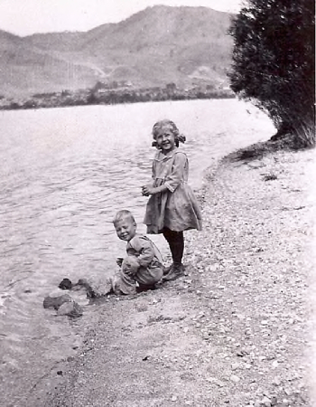 Photo: Phil Long’s mom, Iona Dissmore, and her brother John, at Lakeside with Deer Mountain in the background (1922). This photo is the inspiration for LCRI’s mission statement.